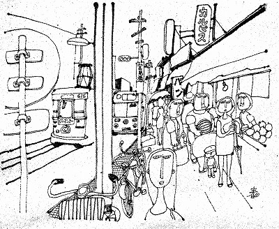 朝夕のラッシュ時。電停の安全地帯は、まるでアリがたかった砂漠と同じ。もりこぼれ、はじきとばされる人々。それも若いOLじゃなく青年が多い。最近の女性は強くなったから…。