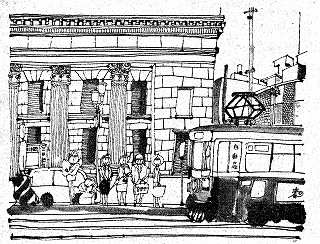 電停をはさんで、丘側が銀行街、浜側が問屋街である。そのあかに小さな喫茶店がポツンと店を出している。
