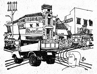 あのころ、市民は娯楽に飢えていた。国際映劇はアメリカ映画の名作を上映、このため劇場は、連日連夜、大入り満員。中年以上の人たちは、姪浜、西新方面、箱崎方面から電車にゆられて、この映劇に通った。千代町は、青春の町だったのである。しかし、それも昔の物語。映劇跡は、いまは駐車場になっている。