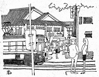 「大学病院前」を近所の人は勝手に言い換えて「医学部前」とよぶ・その方がゴロがいいし、言いやすい。その医学部前の前は旅館街。九州で最高権威の九大医学部。昔は、九州、山口、いや日本国中からこの医学部に診察を求めて人が集まった名残である。いまこの旅館街は、修学旅行の常宿。中学生や高校生が将来の医学博士を夢見ているのか、いがぐり頭を一列にならべて大学をながめたり、電車をながめたり・・・・。
