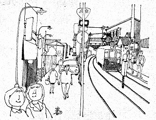 「満員ですので、後の電車にお願いします」、運転士は、あと何日かのサービスに汗びっしょり。そして乗り切れない乗客を電停に残して「出発、進行!」。乗り損ねたOLがニヤリと笑って、ペロッと赤い舌を出して、電車を見送る。そして夕方になると、中洲勤めのホステス嬢が電停にメイキャップの顔をずらりとそろえて、ペチャクチャ、ペチャクチャ。