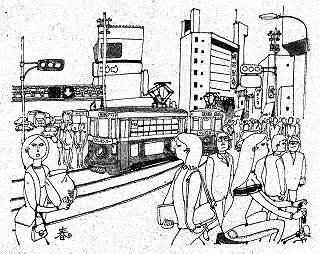 坂道を駆け下りる代行バス。静かな平山から、急に騒々しい六本松バス停に停車した。六本松は、福岡市の西部地区に位置し、西新につぐ活気の町。学生の町。九州大学教養部はもとの福岡高等学校。ここは、むかしから、学生の若い血がおどったところ。福岡の政治や経済界の指導者が続々輩出したところ。いまの学生、ジーパンに長髪、たまには、赤ヘルかぶって鉄棒もって、勇ましげに内ゲバ等もやらかすが、なんだか見ていて頼りない。もっとも、どっしり落ち着いて勉強する学生もいるだろうが、長髪、赤ヘルばかりが目立って、そんなまじめな学生にはめったにお目にかかれない。
